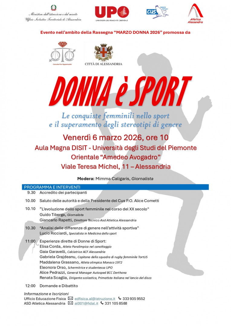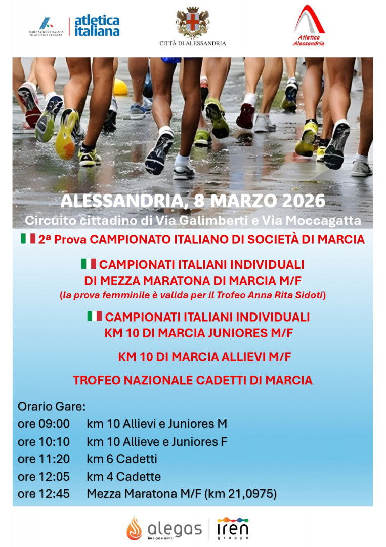 L’evento è promosso dalla Città di Alessandria e organizzato da A.S.D. Atletica Alessandria in partnership con Alegas-Gruppo Iren, su assegnazione della FIDAL. Le gare si svolgeranno su un circuito stradale di 1000 metri tra via Moccagatta e via Galimberti, nelle vicinanze del Campo di Atletica. La manifestazione sarà preceduta da due appuntamenti. Il 6 marzo alle 10 all’Aula Magna dell’Università del Piemonte Orientale, in viale Teresa Michel 11, si terrà l’incontro “Donna è sport” nell’ambito di Marzo Donna 2026. Il 7 marzo dalle 17 al Campo di Atletica di viale Massobrio 28 spazio al convegno tecnico “Il passo giusto: marciare verso il futuro”, con la presenza del Direttore Tecnico FIDAL Antonio La Torre.
