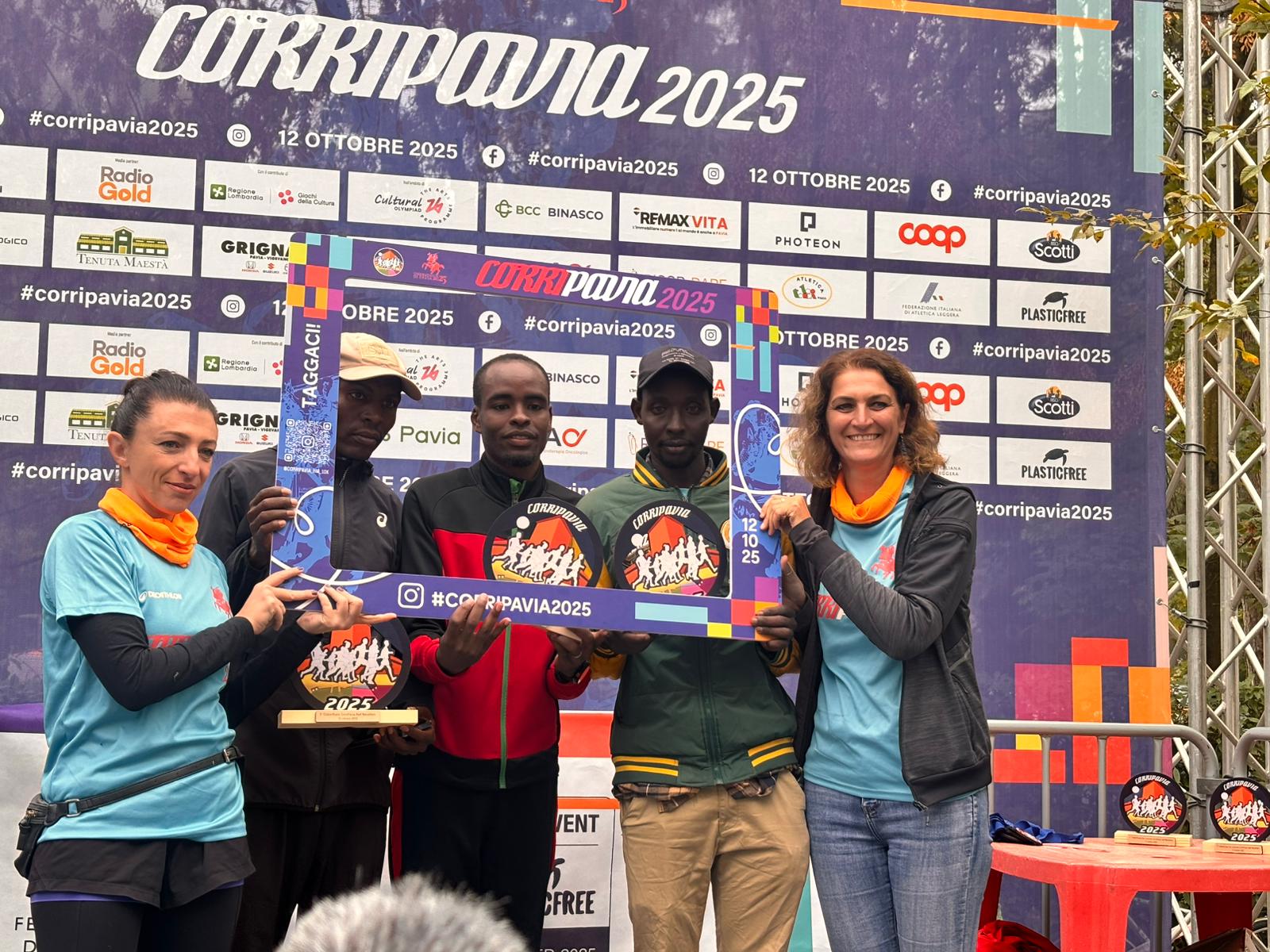 PAVIA –  Nebbia d’autunno e strade gremite di entusiasmo hanno accompagnato la CorriPavia Half Marathon 2025, che ha visto la partecipazione di quasi 5.000 persone tra atleti e appassionati. L’evento, organizzato da ASD Atletica 100 Torri Pavia con il patrocinio del Comune, si è confermato come una delle manifestazioni sportive più partecipate della città, grazie anche alle prove non competitive sulla distanza di 10k, Mini CorriPavia Family Run e Mini CorriPavia Trofeo Scuole e alle iniziative solidali e inclusive. La giornata è stata anche segnata da un momento romantico con la proposta di matrimonio fatta da Daniele alla fidanzata  Nicla, che ha corso la mezza maratona.