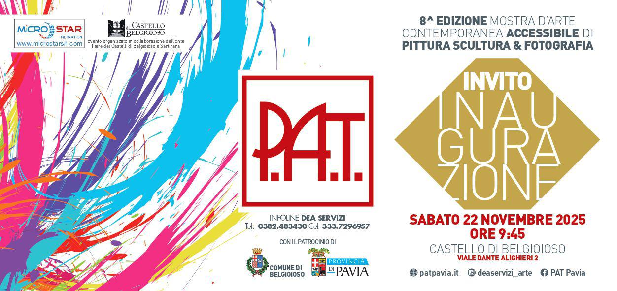 PAVIA – Pavia Art Talent torna con l’ottava edizione e rinnova l’appuntamento con la creatività contemporanea nel Castello di Belgioioso, che il 22 e 23 novembre 2025 si trasformerà ancora una volta in un grande palcoscenico dedicato all’arte accessibile. Dopo il successo delle precedenti edizioni, P.A.T. 2025 conferma la sua vocazione di vetrina d’eccellenza per artisti emergenti e affermati, riunendo pittori, scultori, fotografi, designer e performer in un evento che celebra la pluralità dei linguaggi espressivi e l’incontro diretto tra pubblico e arte. Quest’anno la manifestazione accoglierà oltre 600 artisti provenienti da tutta Italia e dall’estero, accuratamente selezionati per la qualità e l’originalità delle loro opere. Le sale storiche del Castello offriranno un percorso espositivo che spazierà dalla pittura alla scultura, dalla fotografia alle installazioni, fino ai più innovativi new media e progetti digitali interattivi. Non mancheranno le collaborazioni con le associazioni e le gallerie d’arte italiane e internazionali, tra cui: La Pipa, Arte 17, Lo Specchio dell’Arte, Urlo Pavia, Amici di Casma, Associazione Pittori Basiglio e la Fondazione Mazzoleni, e realtà espositive di rilievo come la Galleria Cristiano & Matteo Ragni di Forlì, la Galleria Ebera di Rogno , la Galleria Tekimara di Pavia, la Galleria FMART STUDIO di Monza, la Galleria Kusee di Brescia, la Galleria Dedalo di Reggio Calabria e la Galleria L2ARTE di Pavia.