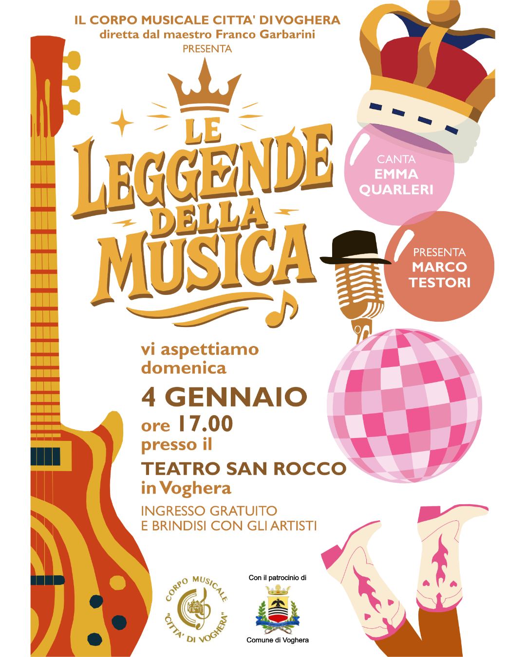 VOGHERA – Domenica 4 gennaio 2026 Voghera apre il nuovo anno con la musica e con la voglia di stare insieme. L’appuntamento è alle 17 al Teatro San Rocco di piazza Provenzal, per “Le Leggende della Musica”, il concerto a cura del Corpo Musicale Città di Voghera, storica realtà del territorio.