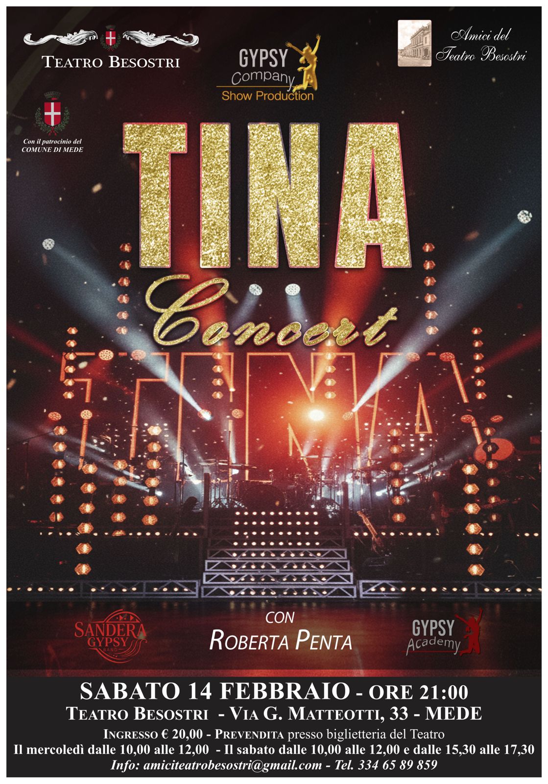 Lo show, prodotto da Gypsy Company Show Production con il supporto degli Amici del Teatro Besostri e il patrocinio del Comune di Mede, è un vero e proprio viaggio musicale attraverso i grandi successi di una leggenda che ha segnato intere generazioni. Sul palco salirà Roberta Penta, performer di grande carisma e talento, capace di restituire tutta la forza, la grinta e l’intensità che hanno reso Tina Turner un’icona mondiale. Voce potente, presenza scenica travolgente e una band pronta a far vibrare il pubblico accompagneranno gli spettatori in uno show coinvolgente e spettacolare.