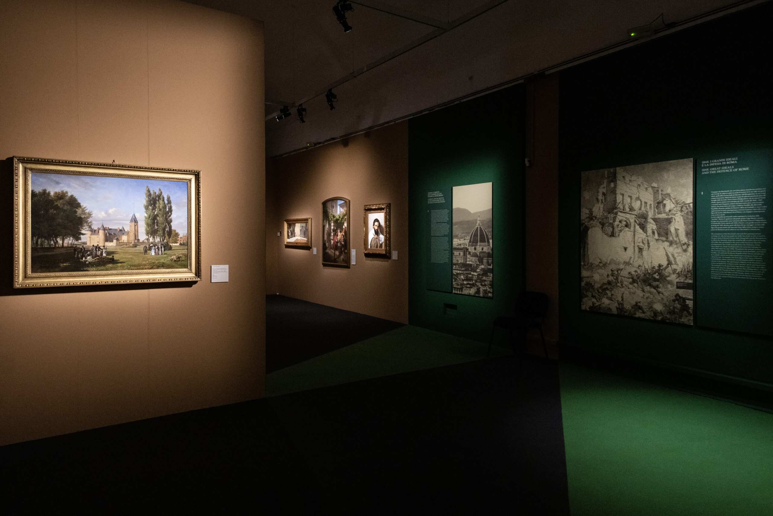 Il percorso espositivo, articolato in nove sezioni, ricostruisce l’esperienza dei Macchiaioli dal 1848 al 1872, dalla stagione delle battaglie risorgimentali alla crisi degli ideali unitari segnata dalla morte di Giuseppe Mazzini. Attraverso i capolavori di Giovanni Fattori, Silvestro Lega, Telemaco Signorini, Vincenzo Cabianca, Odoardo Borrani, Giuseppe Abbati e Raffaello Sernesi, emerge il ritratto di una generazione unita da una visione comune ma capace di esprimere forti individualità artistiche.