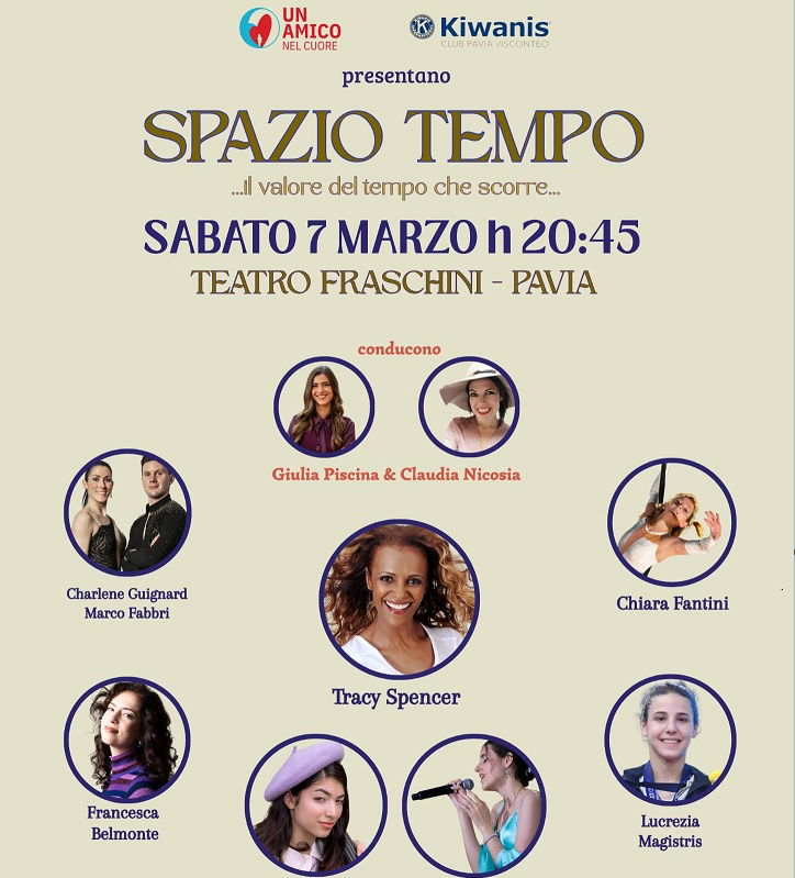 PAVIA – Sabato 7 marzo 2026 il Teatro Fraschini di Pavia ospiterà “Spaziotempo”, un evento artistico e solidale che unisce spettacolo, riflessione e impegno sociale. L’iniziativa è promossa dal comitato “Un Amico nel Cuore” insieme al Kiwanis Club Pavia Visconteo Onlus, con il patrocinio del Comune di Pavia, e nasce con un obiettivo chiaro: offrire alla città uno spettacolo di alto livello culturale e, allo stesso tempo, sostenere concretamente famiglie e minori in difficoltà.