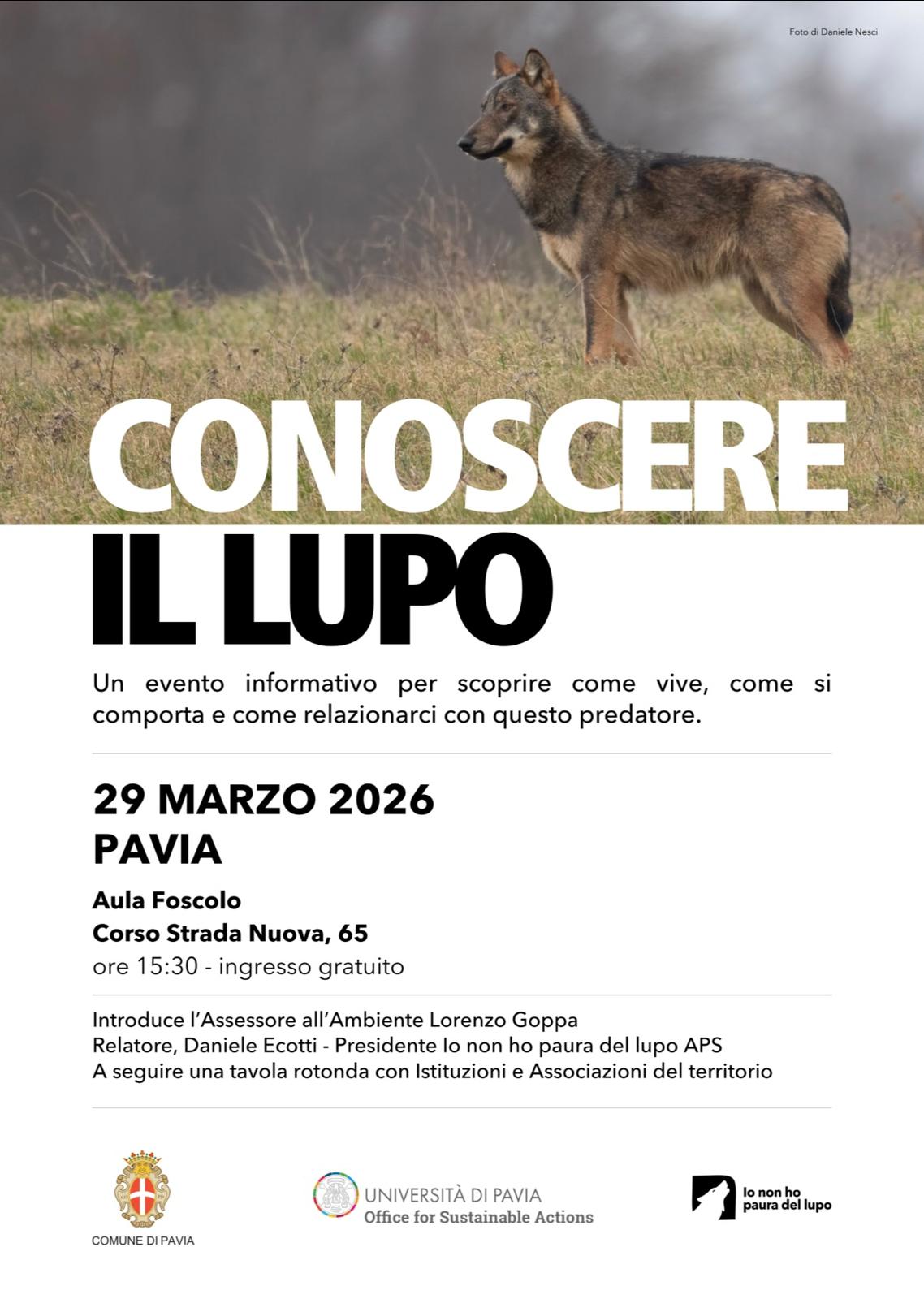 PAVIA – Domenica 29 marzo 2026, alle 15.30, nell’Aula Foscolo a Pavia, si terrà un incontro aperto a tutti per informarsi, capire e superare paure e pregiudizi su un animale fondamentale per i nostri ecosistemi: il lupo.