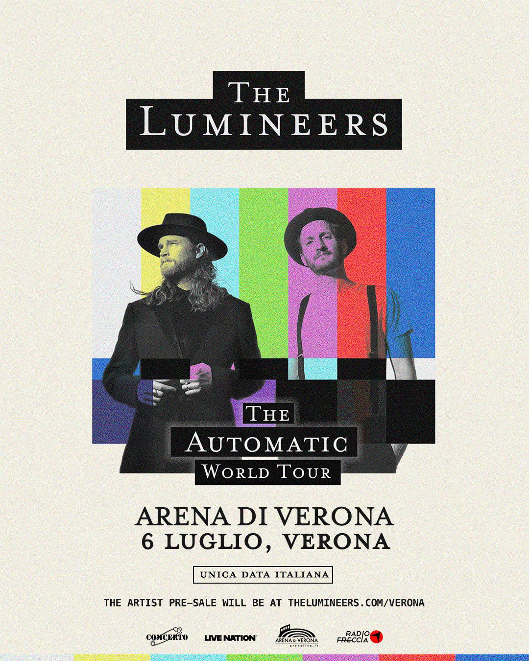 Ora, con Automatic, Schultz e Fraites aprono un nuovo capitolo. Il disco, registrato a Woodstock insieme ai produttori David Baron e Simon Felice, segna un ritorno alle origini e allo stesso tempo un passo avanti nel loro percorso creativo. Intimo, diretto e profondamente umano, l’album esplora nuovi territori sonori e tematici, fondendo ironia, vulnerabilità e la ricerca di connessione in un mondo sempre più complesso. L’appuntamento all’Arena di Verona nel 2026 si preannuncia come uno dei momenti più attesi della prossima stagione musicale italiana: un’occasione unica per ascoltare dal vivo i nuovi brani di Automatic insieme ai grandi successi che hanno segnato la carriera dei Lumineers, da Ho Hey a Ophelia, da Cleopatra a Brightside.