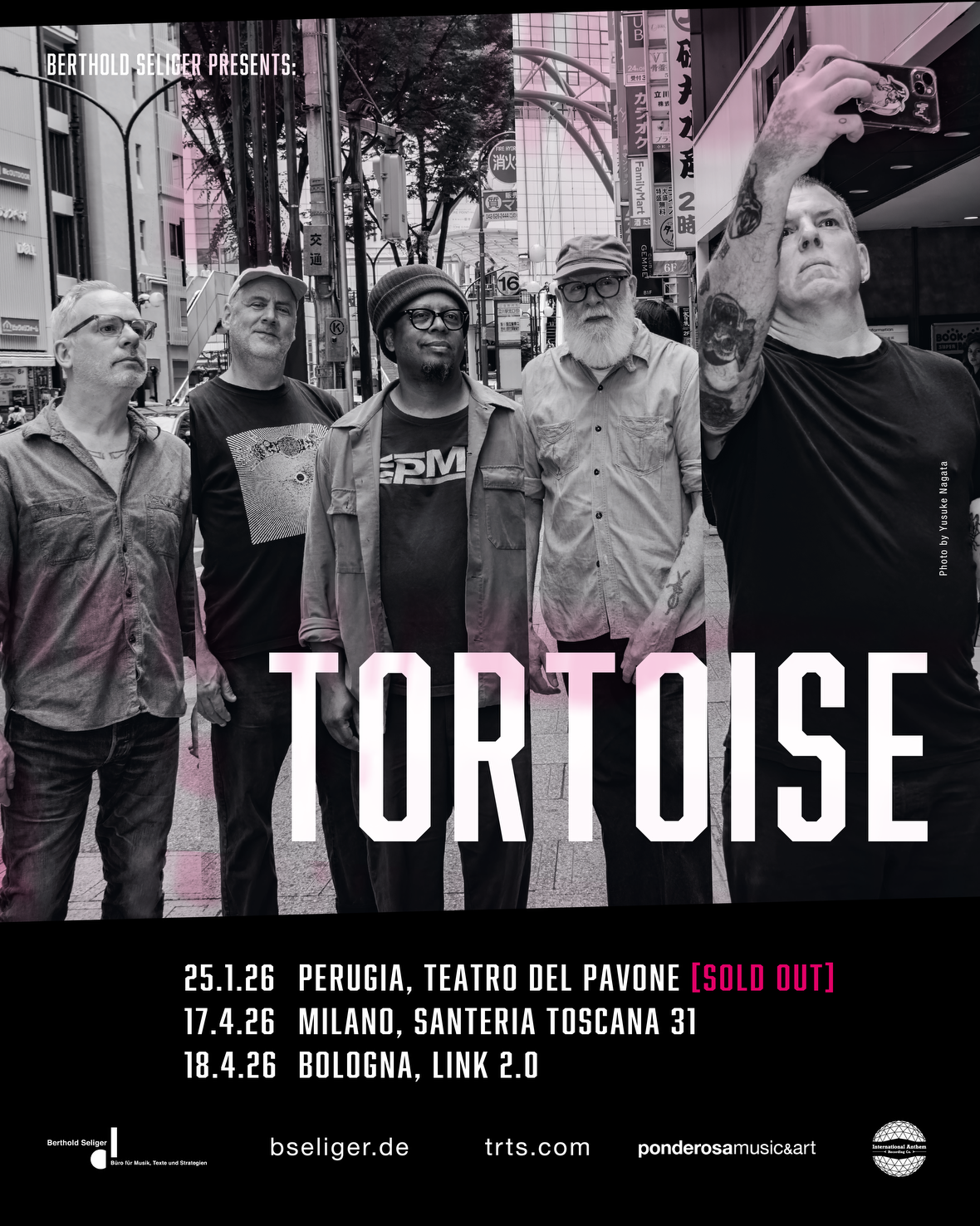Considerati tra i gruppi più influenti degli ultimi quarant’anni, i Tortoise tornano finalmente in Italia con un tour a supporto del nuovo album Touch, uscito lo scorso 24 ottobre 2025. Dopo il primo annuncio, la data di Perugia ha registrato il tutto esaurito con oltre due mesi di anticipo, confermando il forte entusiasmo e l’attesa del pubblico per la band di Chicago. Sull’onda di questo straordinario riscontro, il gruppo annuncia ora due nuovi appuntamenti ad aprile: il 17 alla Santeria Toscana 31 di Milano e il 18 al Link 2.0 di Bologna. Celebri per le loro performance dal vivo, definite da Rolling Stone come “un miracolo di precisione e libertà”, dopo quasi dieci anni dall’ultima tournée, i Tortoise tornano sui palchi europei con una nuova produzione scenica, per tre concerti italiani che promettono di essere esperienze sonore e visive irripetibili. Touch è il primo lavoro in studio dal 2016 e rappresenta una nuova fase per il gruppo di Chicago, da sempre in bilico tra sperimentazione e forma canzone. Il disco è stato anticipato dai singoli Oganesson – definito dal New York Times “un brano funk in 7/4 dal sapore da spy-movie” – e Layered Presence, che Pitchfork descrive come “un esercizio di tensione che unisce pulsazione ipnotica e melodia in costante ricerca”.