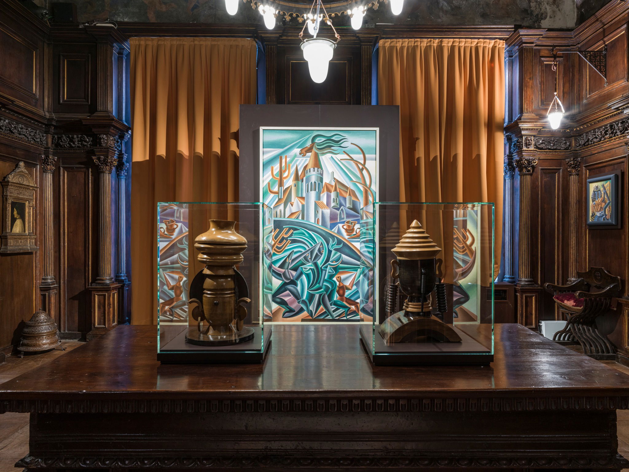 Il progetto mette in evidenza il parallelismo tra l’esperienza dei fratelli Fausto e Giuseppe Bagatti Valsecchi e quella di Depero, accomunati dalla volontà di creare spazi dove passato e contemporaneità convivono, rinnovando il significato della memoria. Le opere si integrano con arredi e collezioni storiche in un allestimento firmato dallo studio a-fact architecture factory di Milano, con il progetto illuminotecnico di LightScene Studio. Il percorso è arricchito da installazioni sonore curate da Gaetano Cappa dell’Istituto Barlumen. La mostra si chiude con la rievocazione del ViBi Bar, il locale futurista ideato da Depero nel 1937, riproposto attraverso appuntamenti che trasformano il museo in uno spazio di incontro tra arte, musica e convivialità.